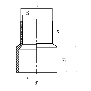 Z1 | Z2 | L | e1 | e2 | SDR11 | SDR13.6 | SDR17 | SDR21 |